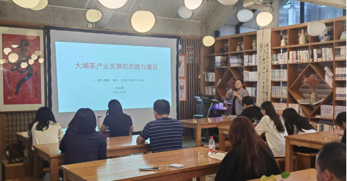 工商管理学院李彦辉博士基于英德、潮州、大埔三地对比,作“大埔茶产业发展的思路与建议”报告。对大埔茶叶的发展提出三重突破路径:一是对标英德建立全链条品质标准,强化“世界长寿乡”“高山云雾茶”的差异化定位;二是借鉴潮州文化赋能经验,联动陶瓷产业开发茶器具等衍生产品,挖掘红色茶山的文化内涵;三是深化茶旅融合,以岽顶湖茶场等资源为核心,完善民宿、体验工坊等配套,打造“采茶-制茶-品茶-购茶”的沉浸式线路,借力梅龙高铁拓展大湾区客源市场。